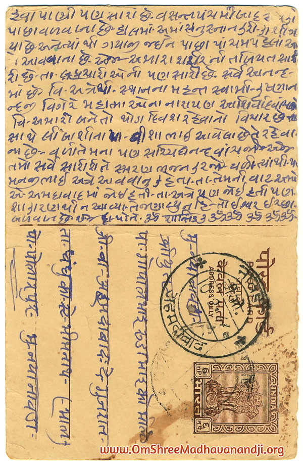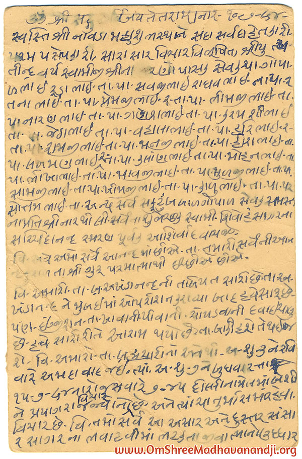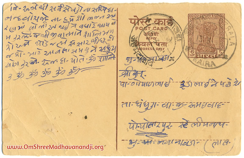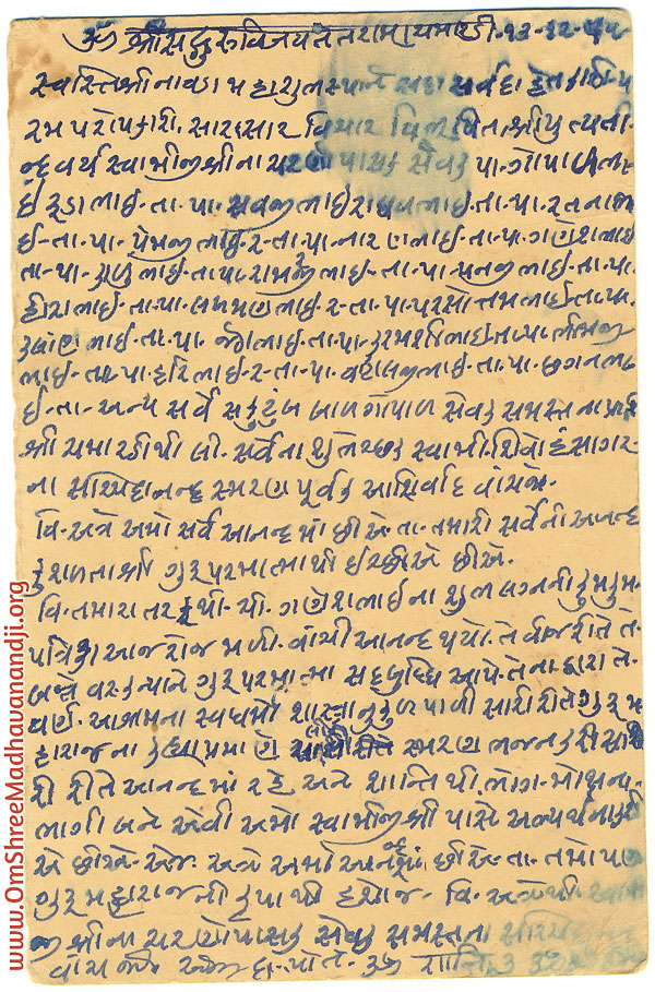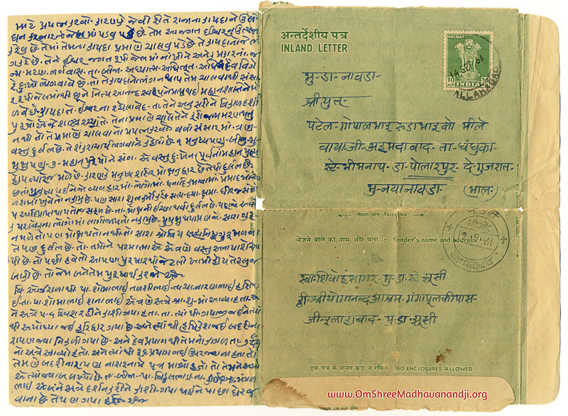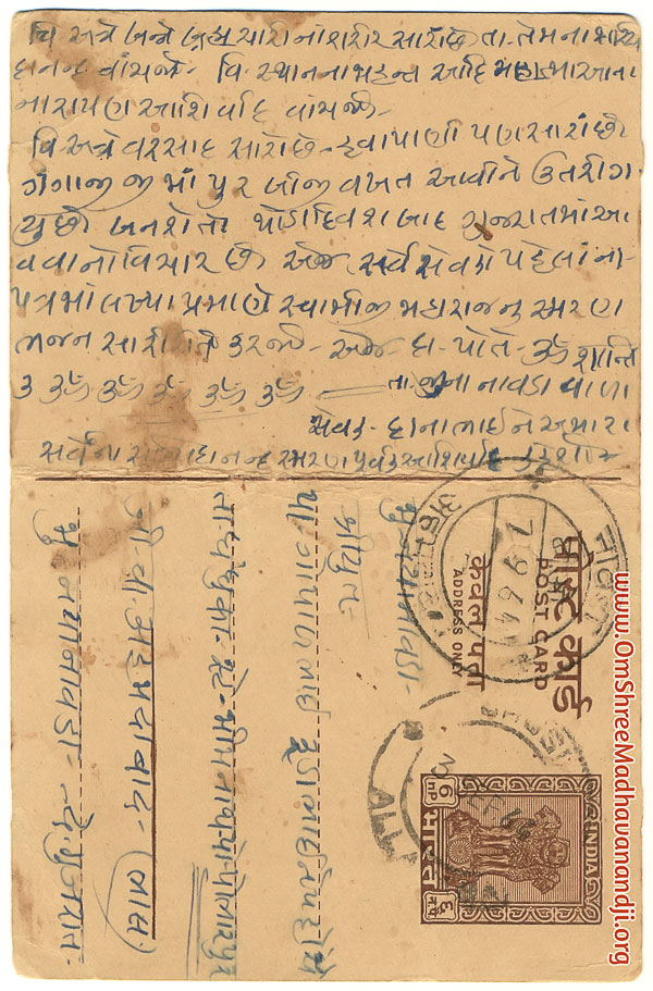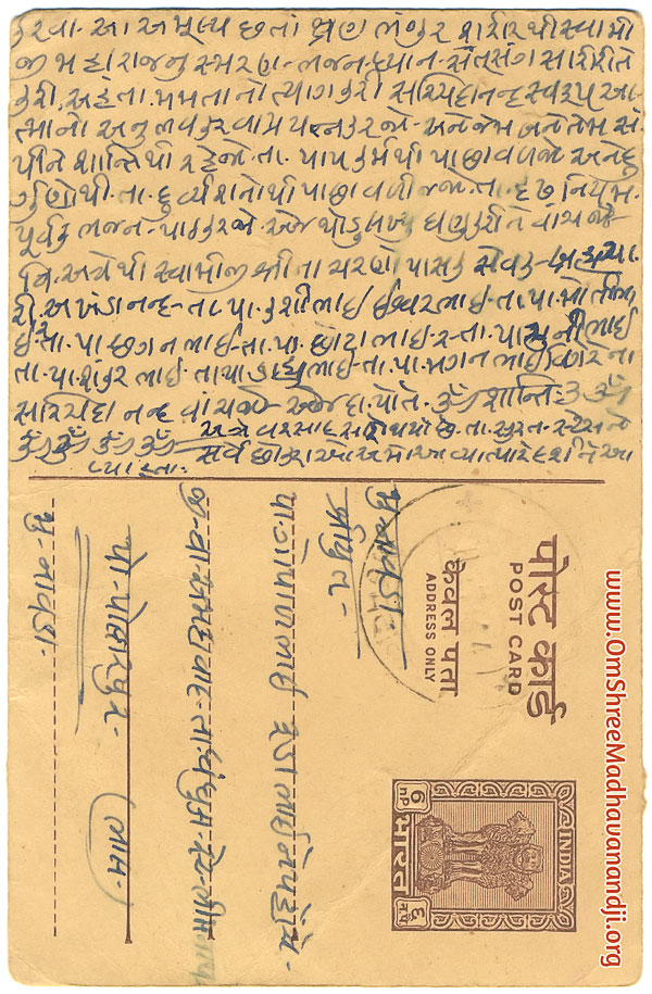 On this page we have posted some historical letters written by our swami shree before many years.We have listed it here so everyone from Madhavanand Parivar can read it.