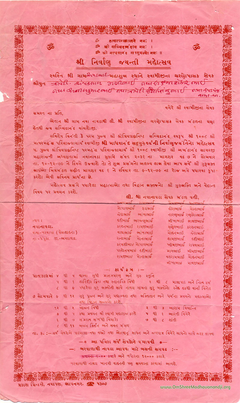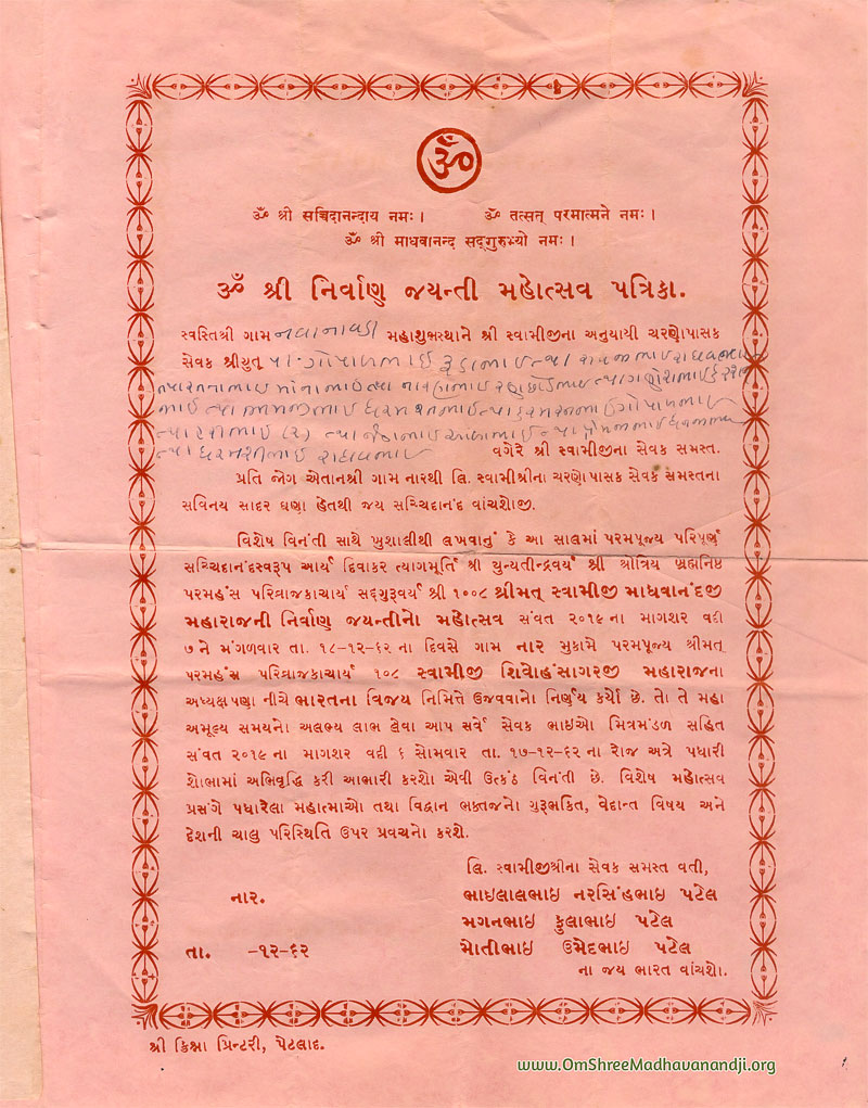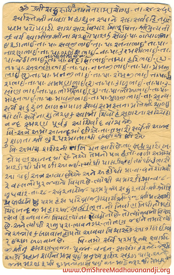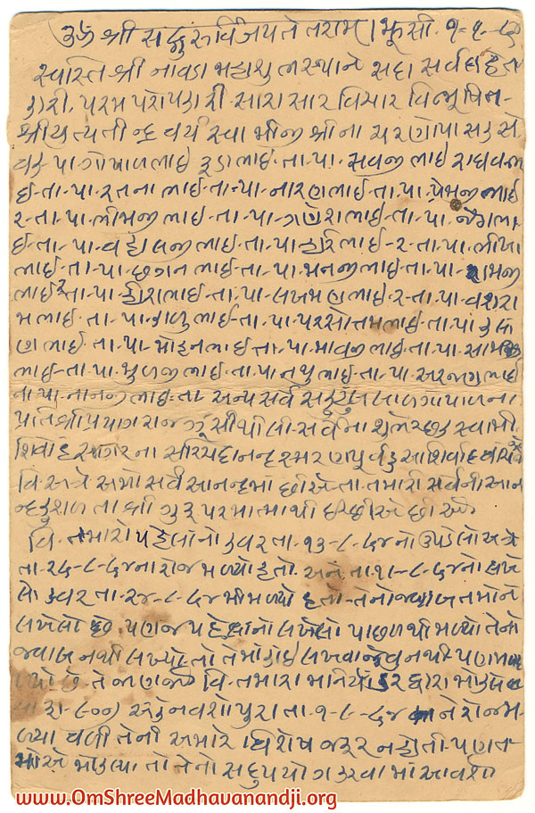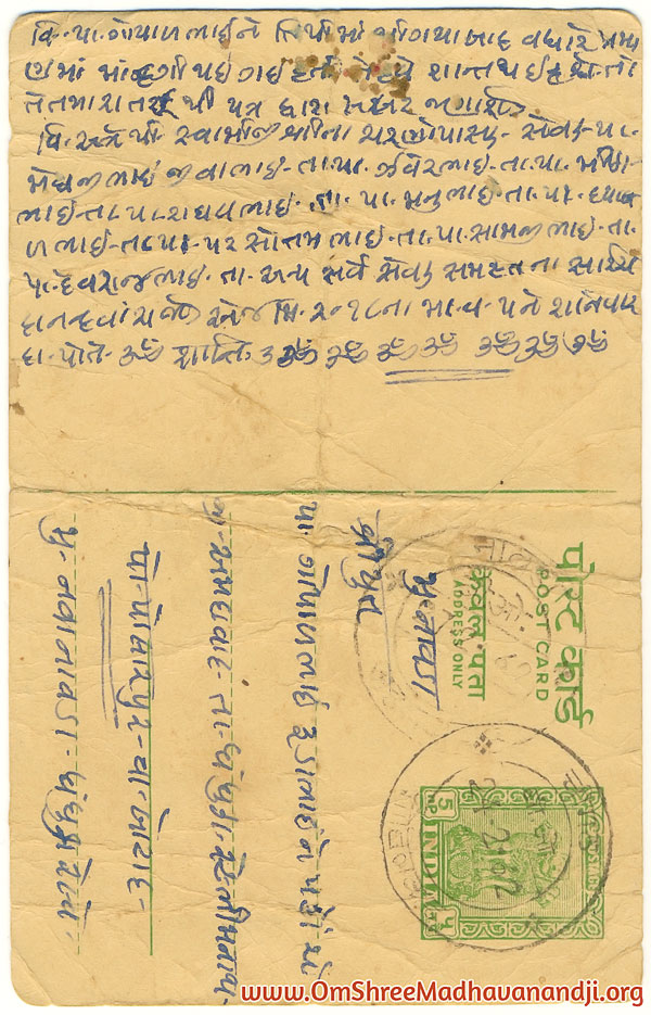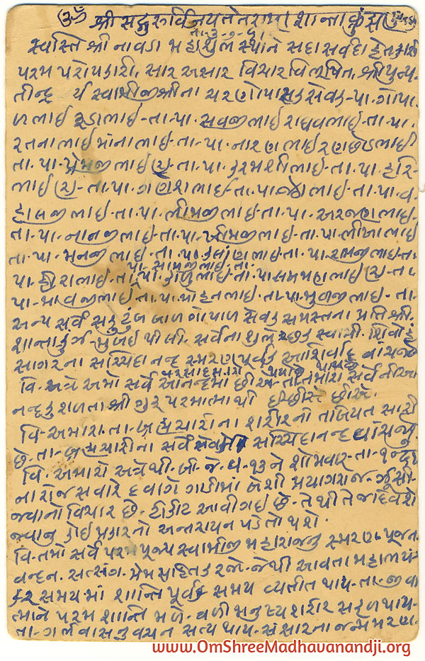 On this page we have posted some historical letters written by our swami shree before many years.We have listed it here so everyone from Madhavanand Parivar can read it.